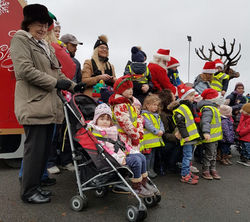 There where whoops of excitement as Santa Claus arrived to Scoil BhrÃde with his ingenious sleigh, escorted by the Garda Traffic Corps, on 7th December. Santa chatted with the children and posed for lots of photos with each class. Children from the local Curragh Montessori School were also invited along for this very special event.